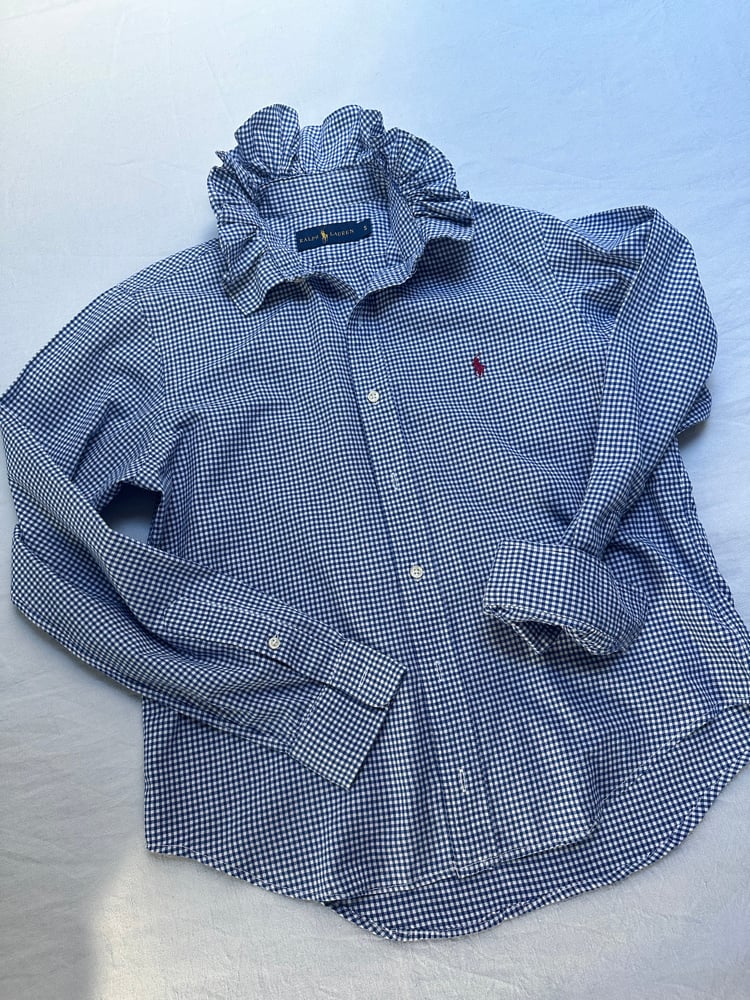 Chemise d’homme Ralph Lauren rééditée en blouse femme.