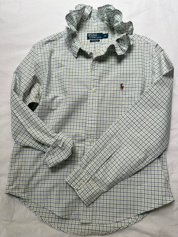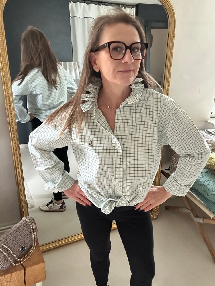Chemise d’homme Ralph Lauren rééditée en blouse femme.