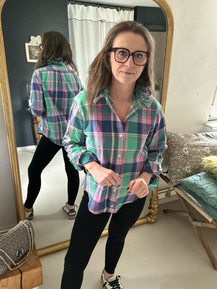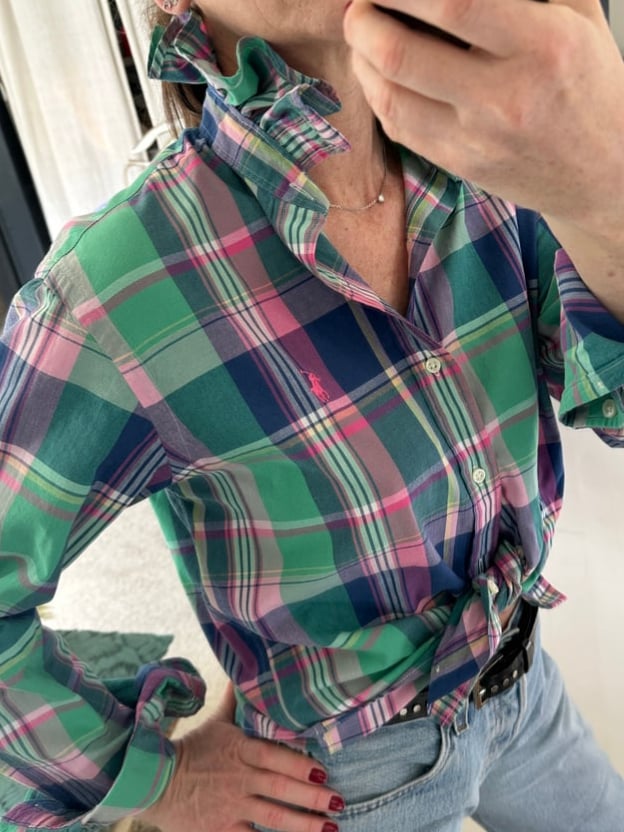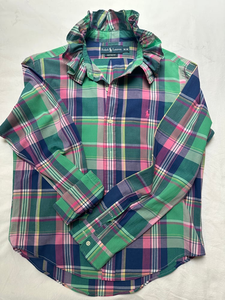 Chemise d’homme Ralph Lauren rééditée en blouse femme.