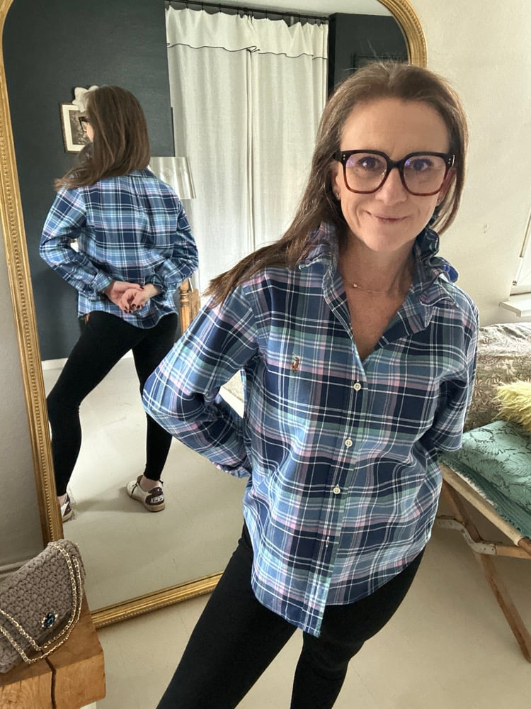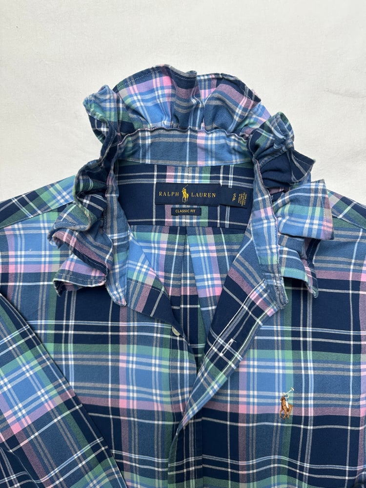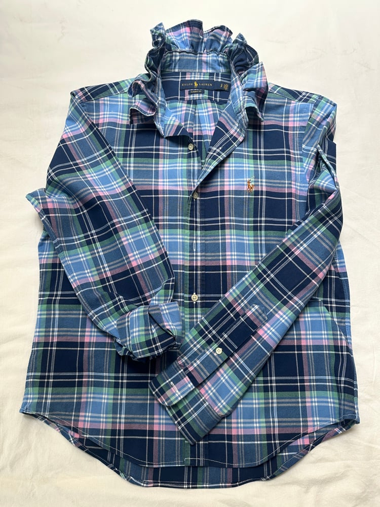 Chemise d’homme Ralph Lauren rééditée en blouse femme.