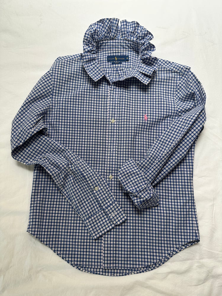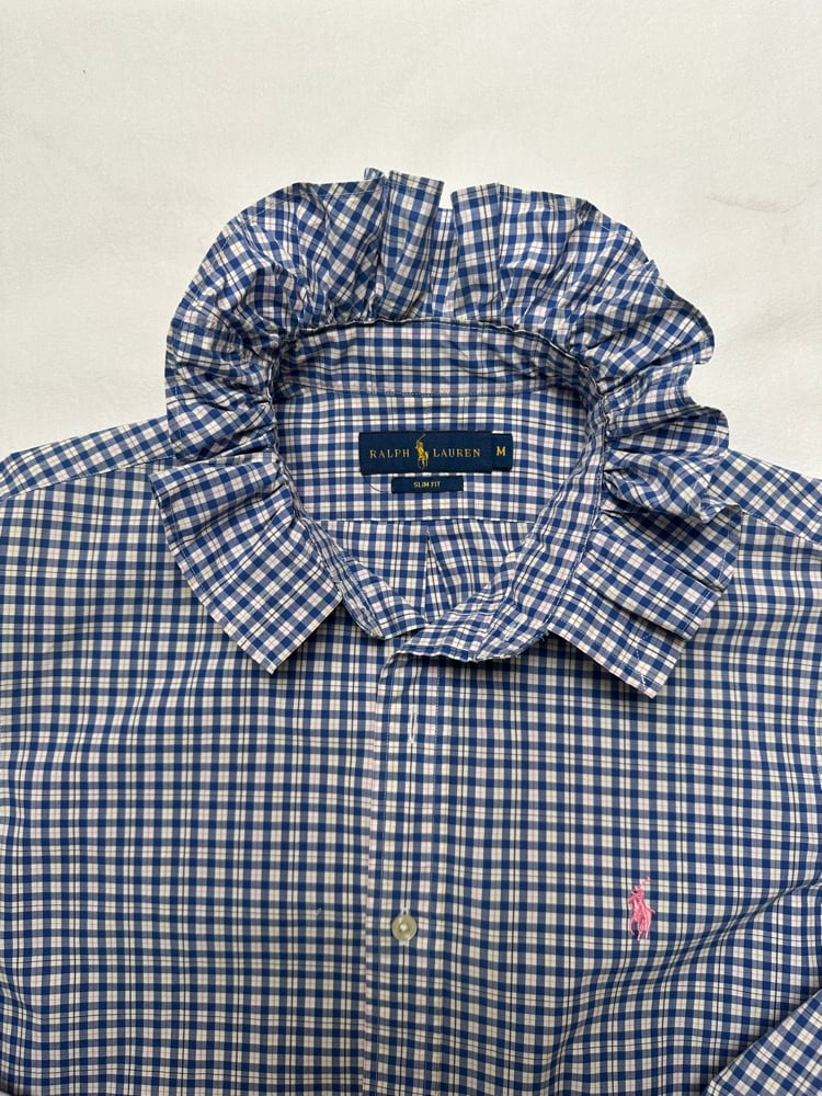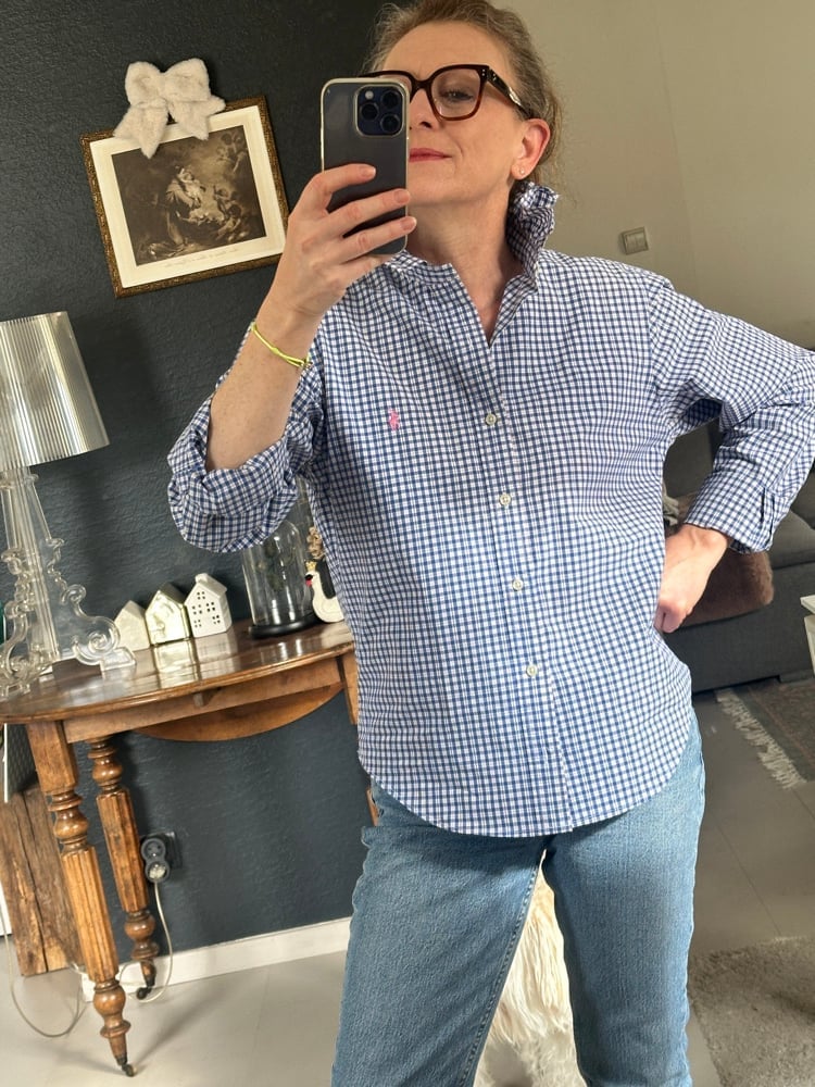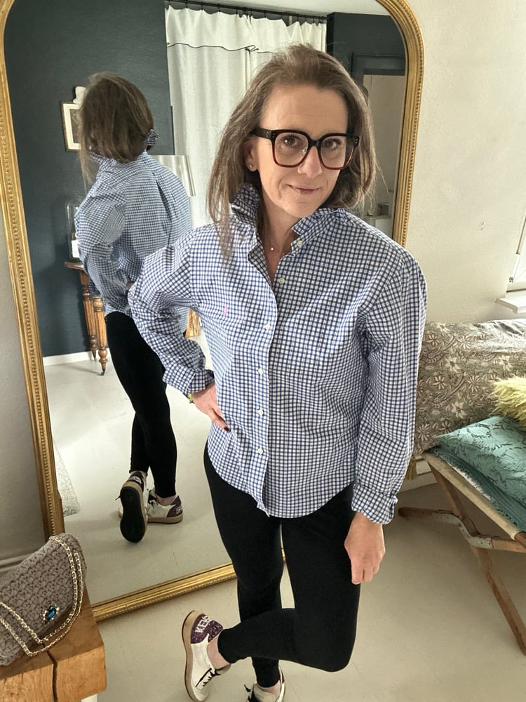 Chemise d’homme Ralph Lauren rééditée en blouse femme.
