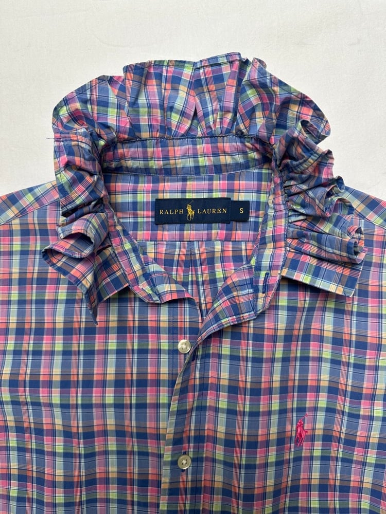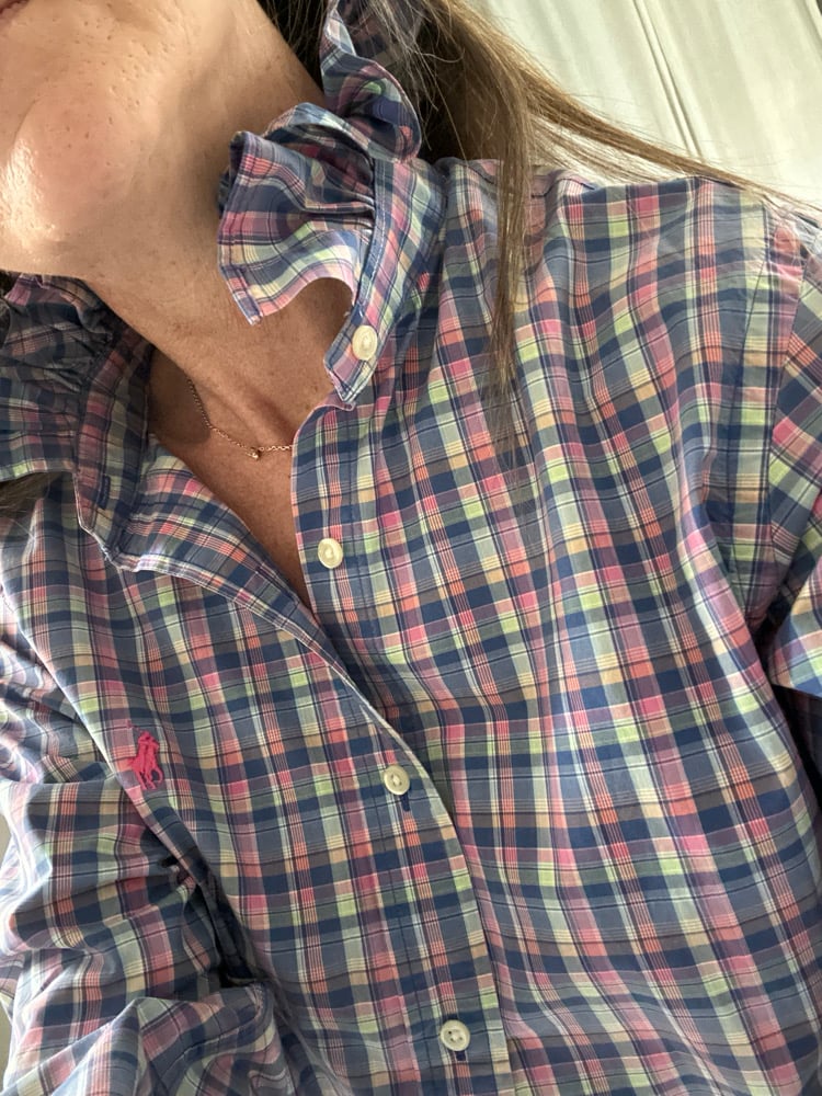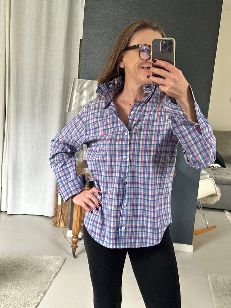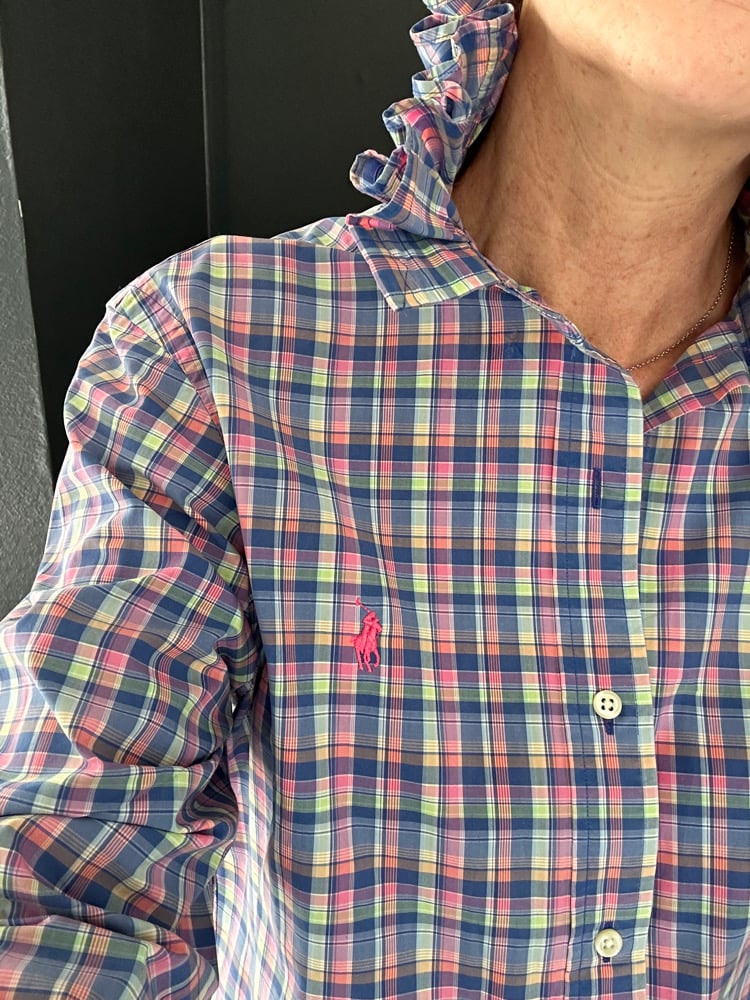 Chemise d’homme Ralph Lauren rééditée en blouse femme.