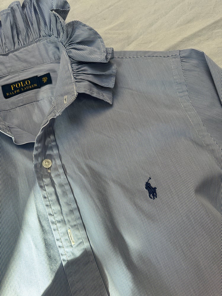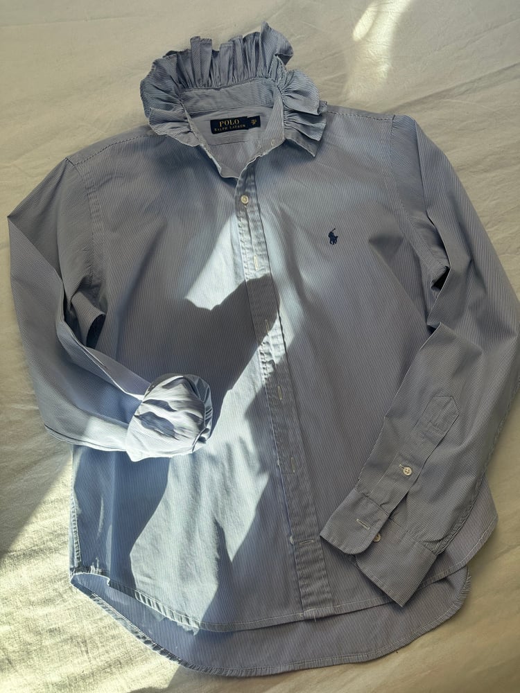 Chemise d’homme Ralph Lauren rééditée en blouse femme.
