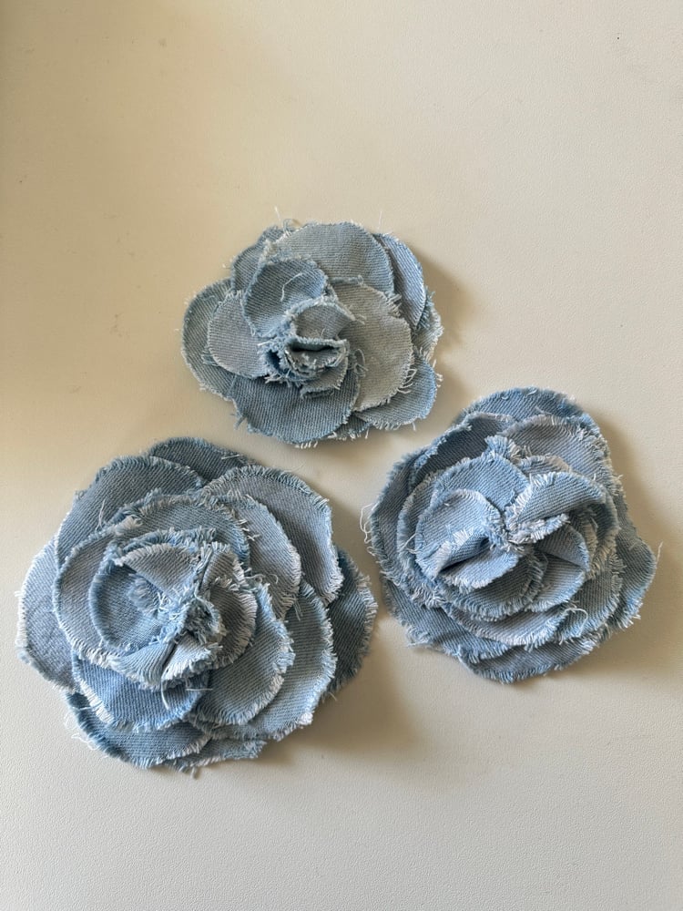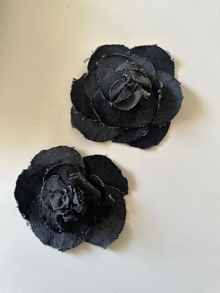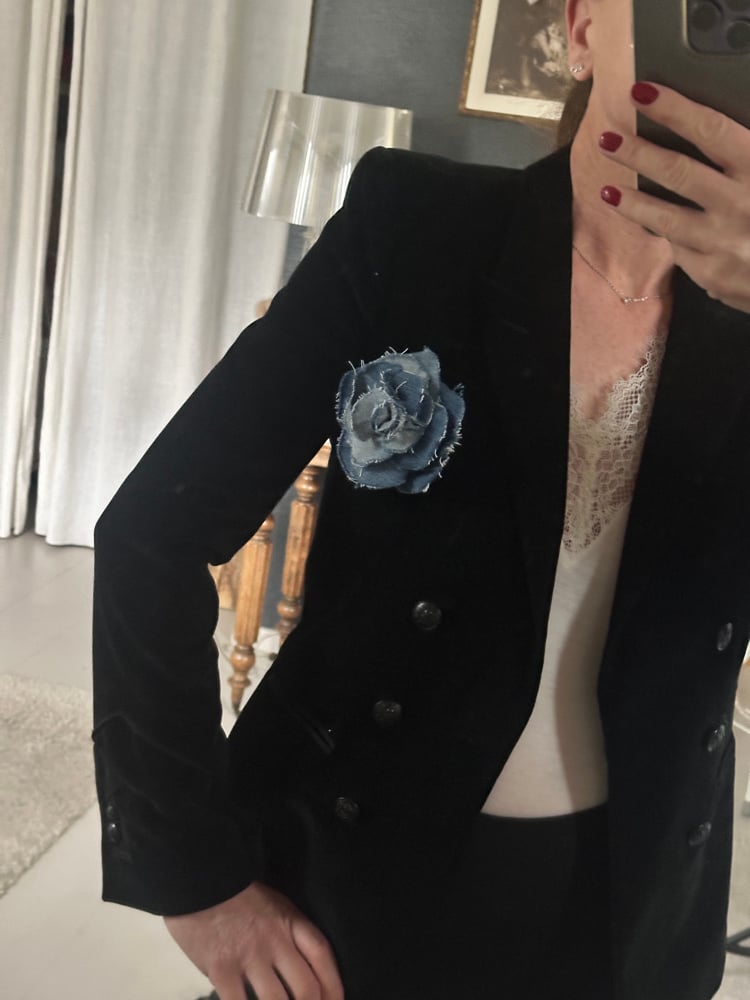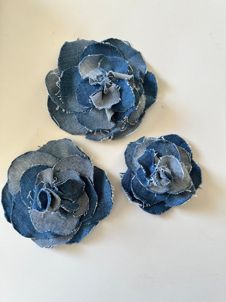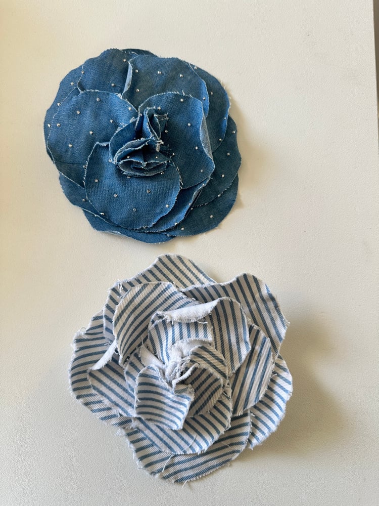 Broches camélia réalisées à la main avec différents denim .