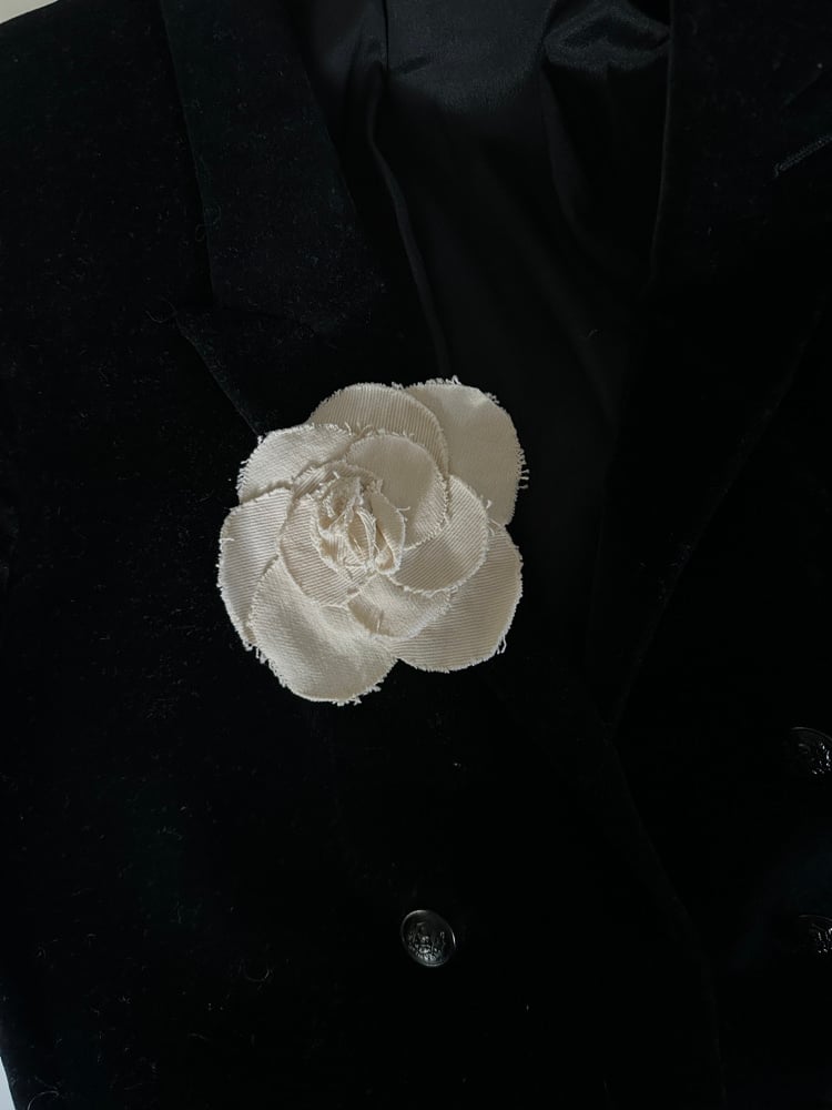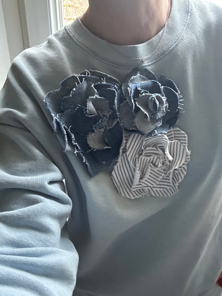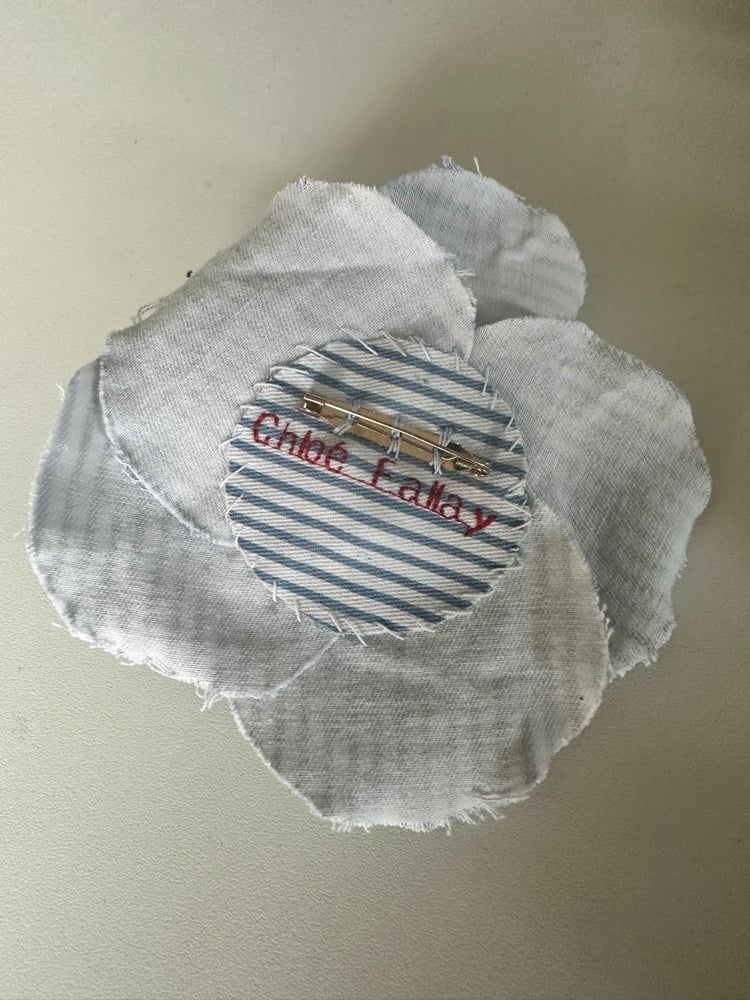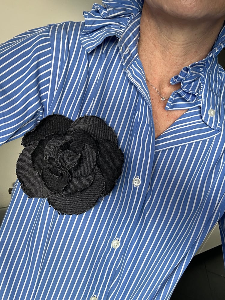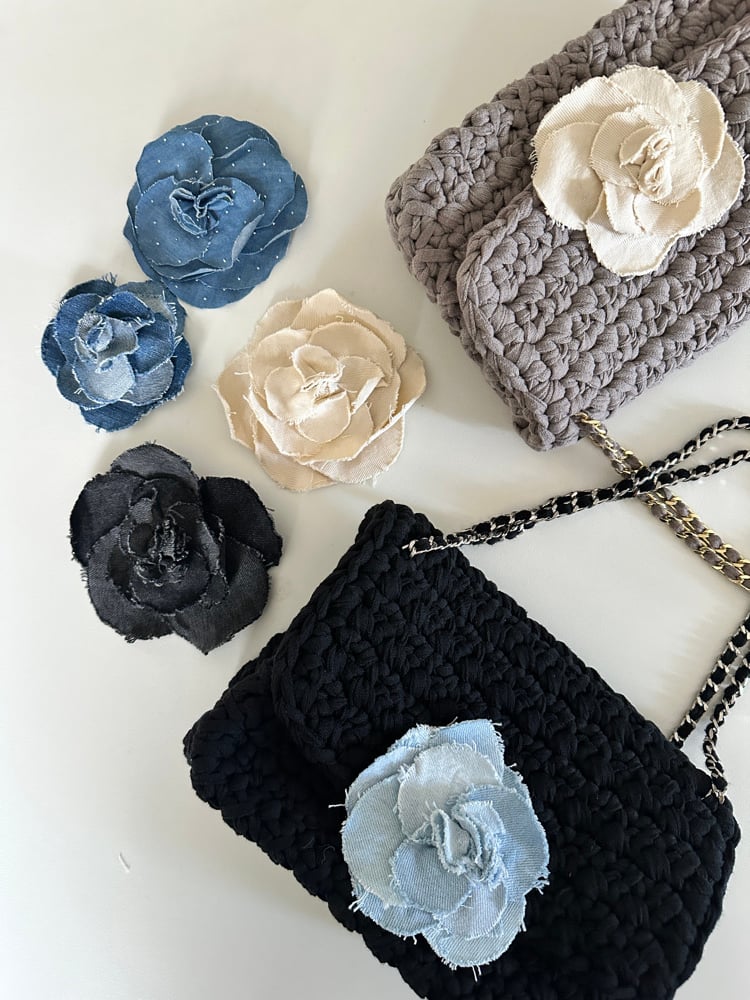Broches camélia réalisées à la main avec différents denim .