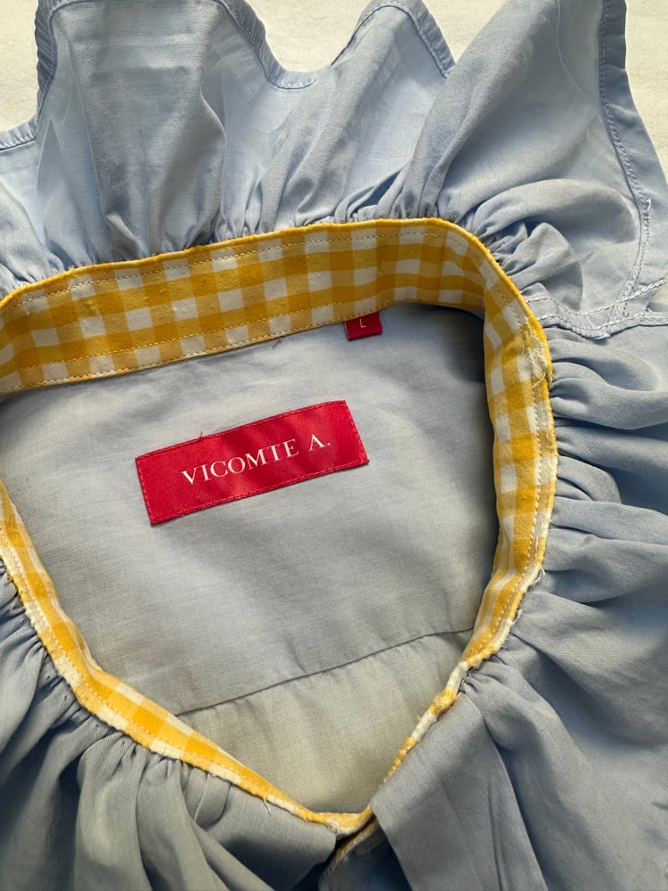 Doublure manches et pied de col Vichy jaune d’origine.