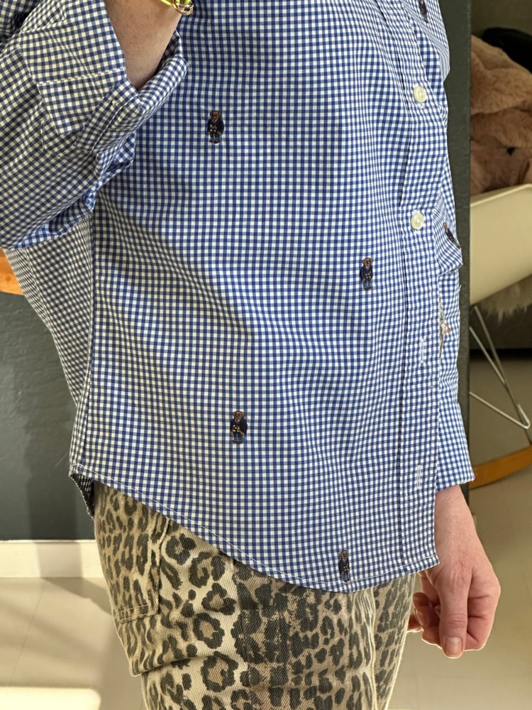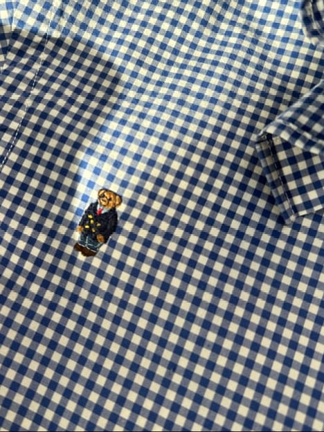 Imprimé vichy bleu marine et petits ours emblématiques brodés .