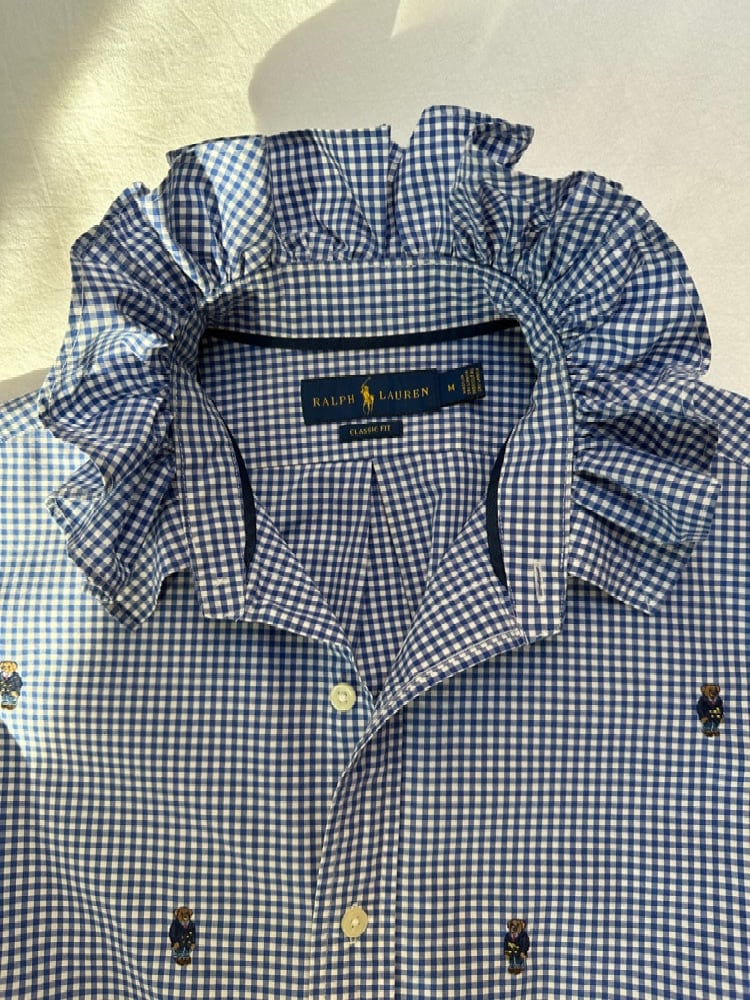 Le bas a été raccourci pour créer un col à froufrou 🤍