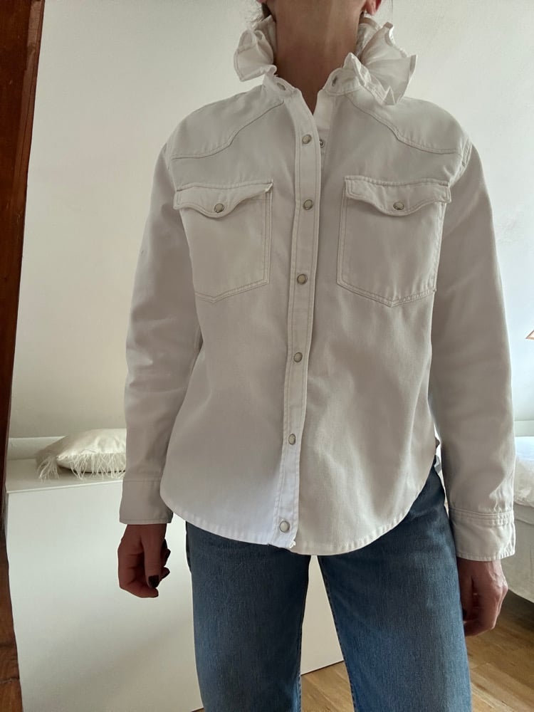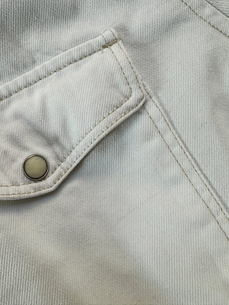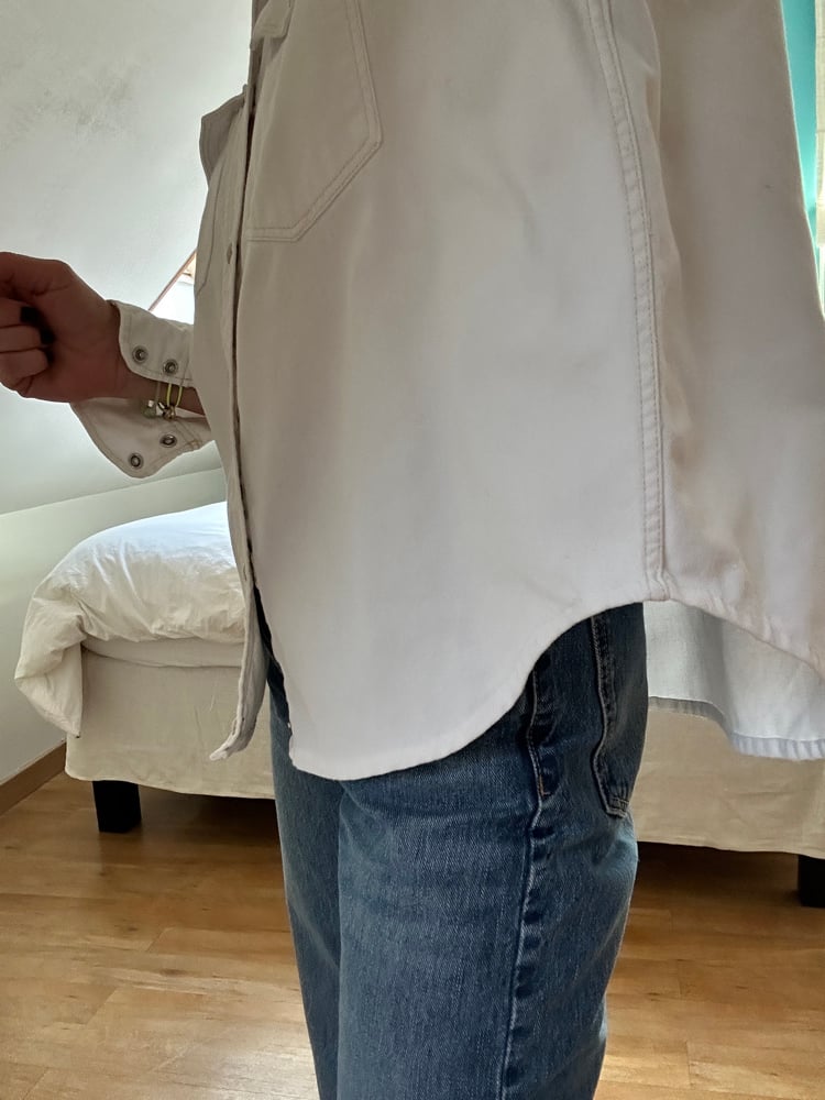 Boutons pressions, poches poitrine, pince 3 cm au dos.
