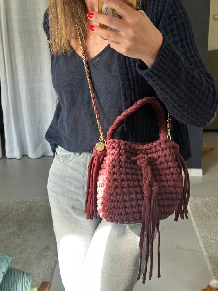 Looké et très facile à porter, le lady bucket est crocheté avec un fil de jersey upcyclé.