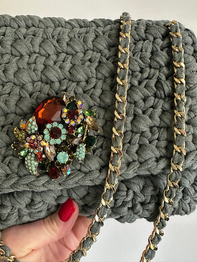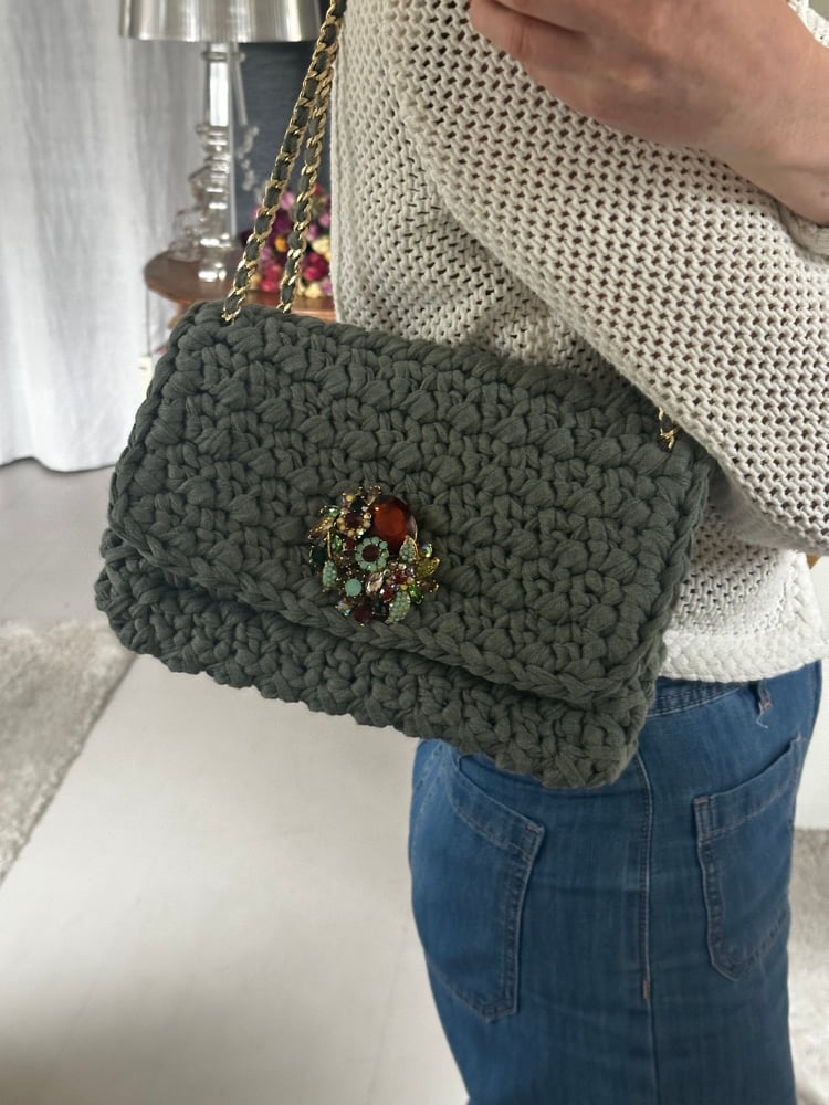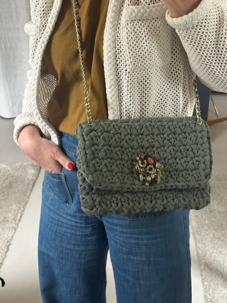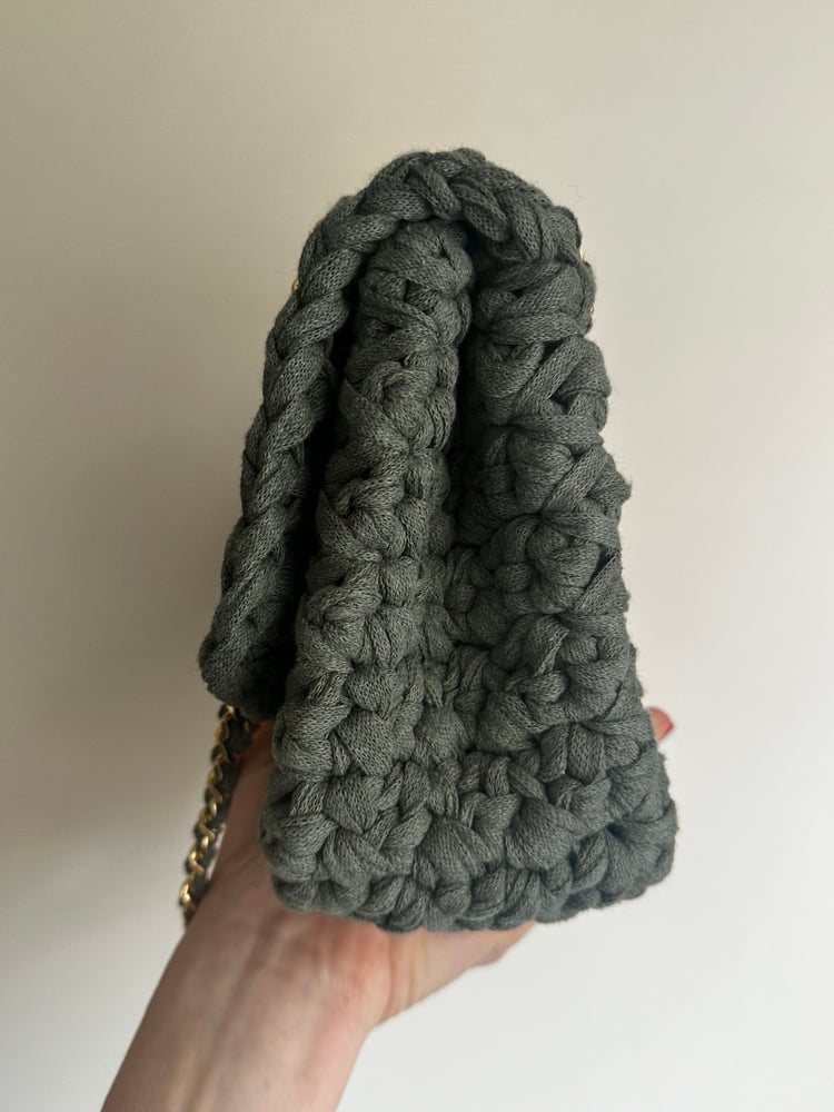 Crocheté à la main avec des fils upcyclés 90% coton.