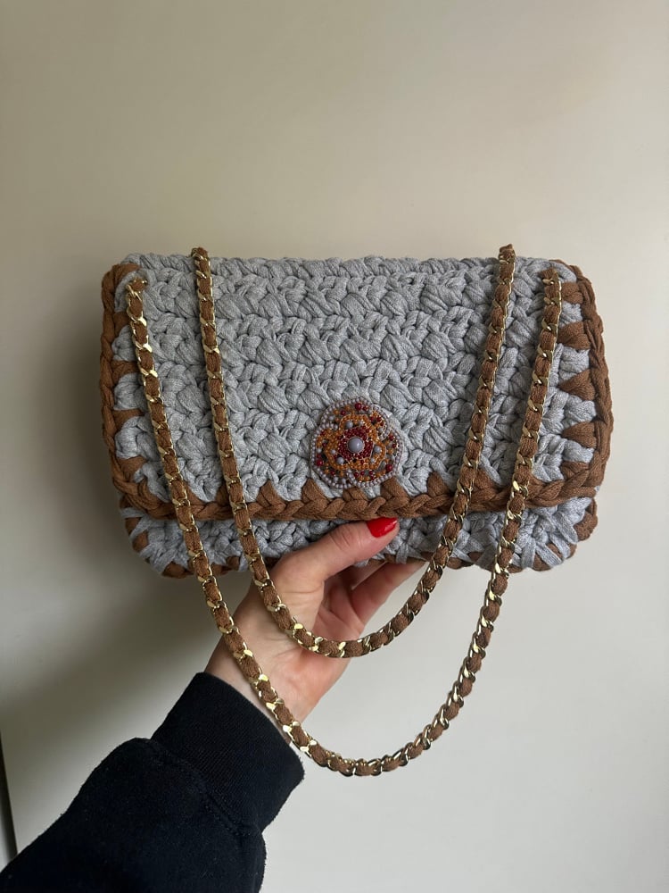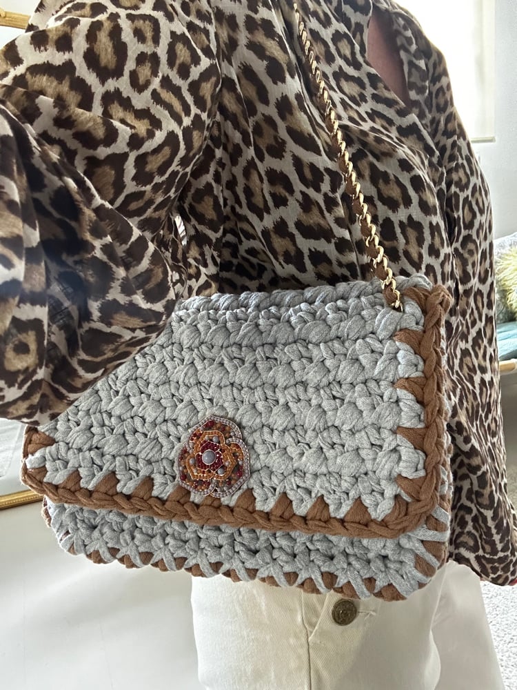 Crocheté à la main avec des fils upcyclés 90% coton.