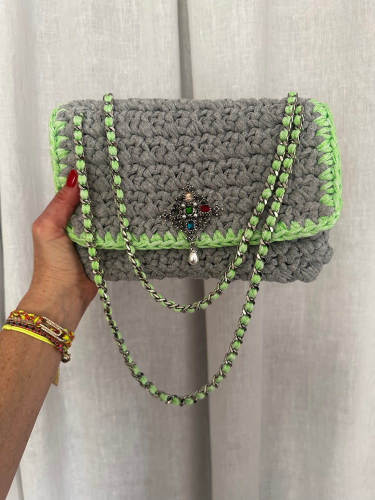 Mega Chacha gris clair / bordure vert fluo :