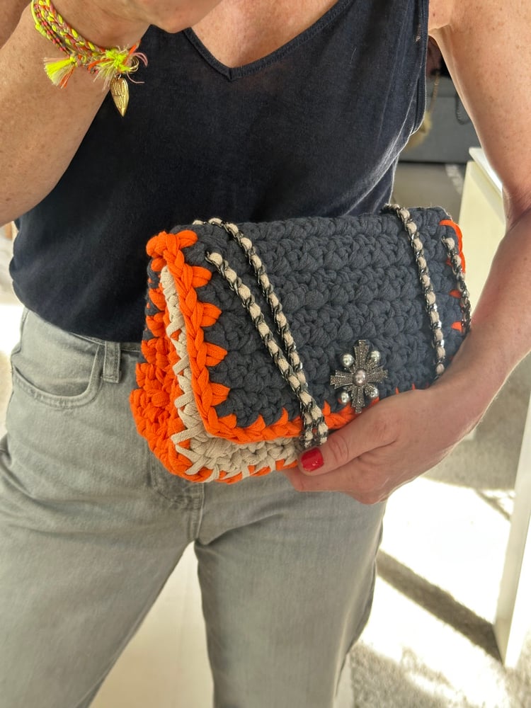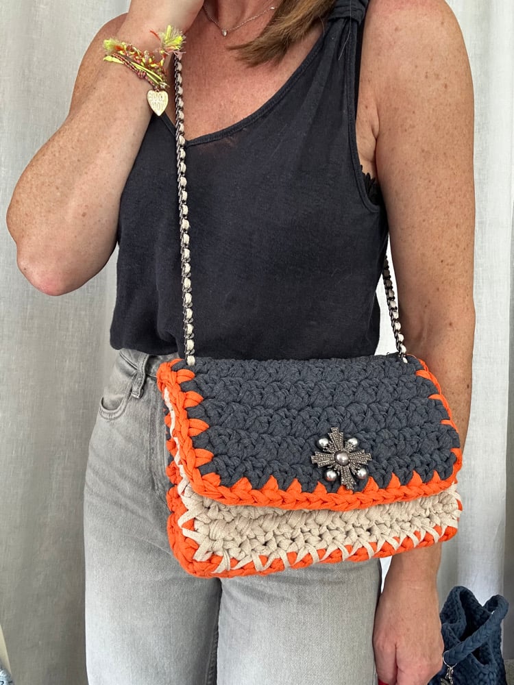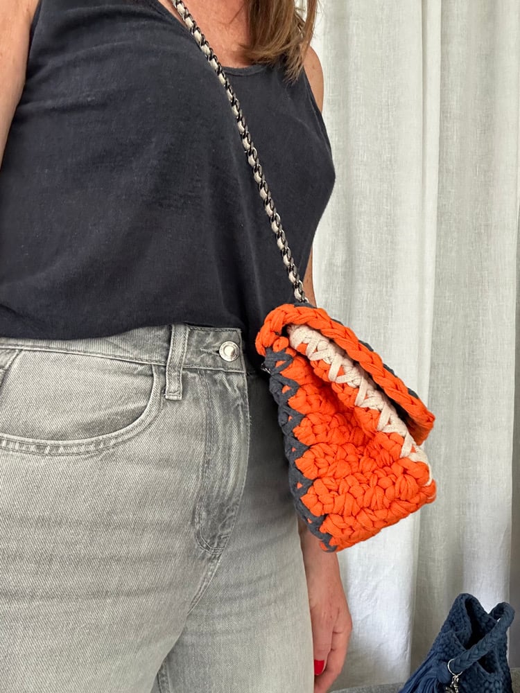 Crocheté à la main avec des fils upcyclés 90% coton.