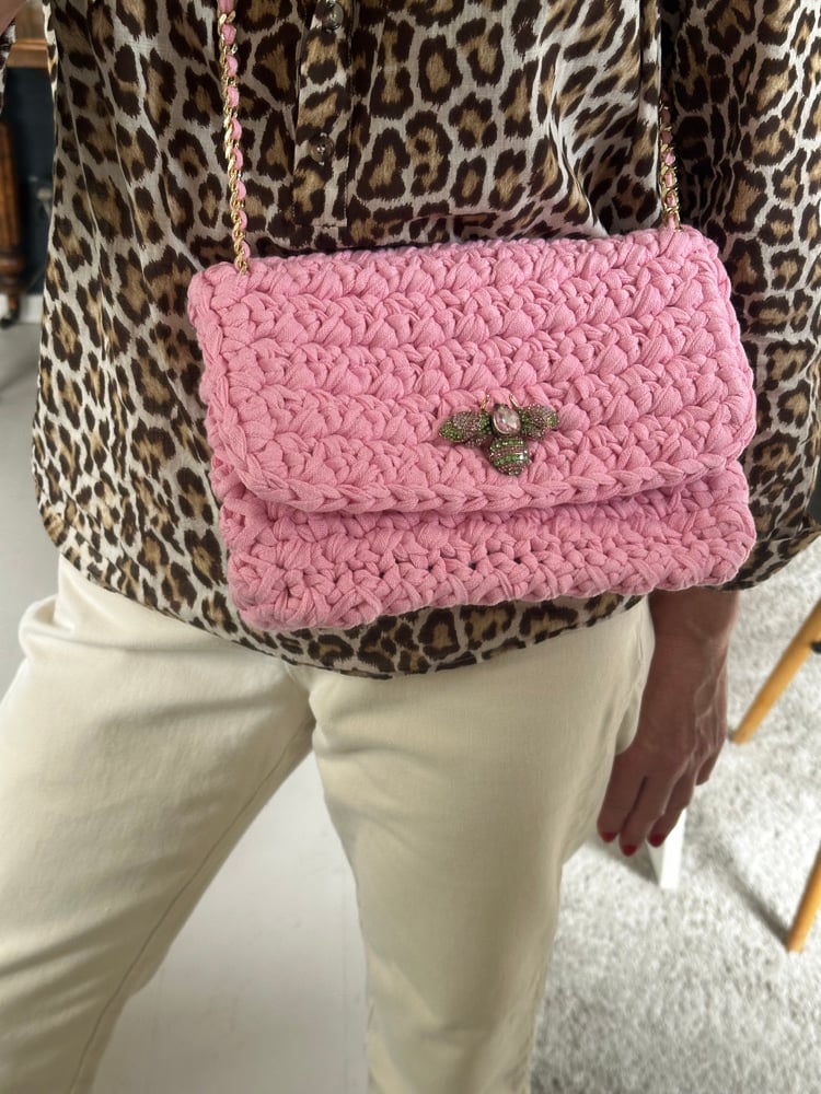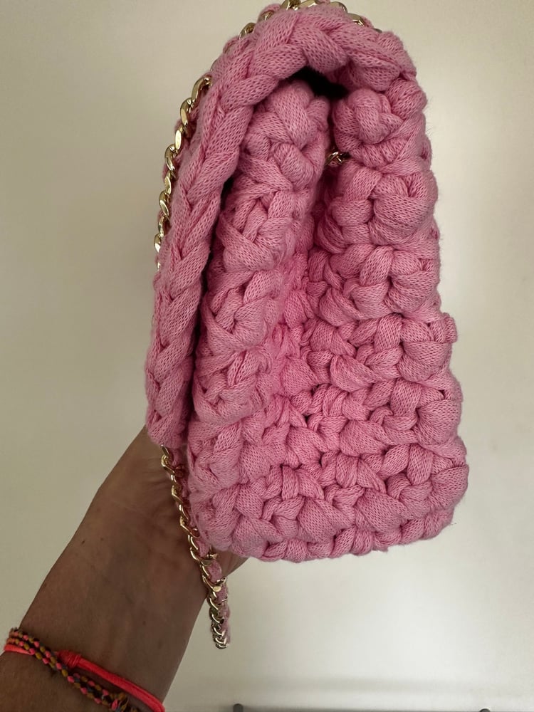 Crocheté à la main avec des fils upcyclés 90% coton.