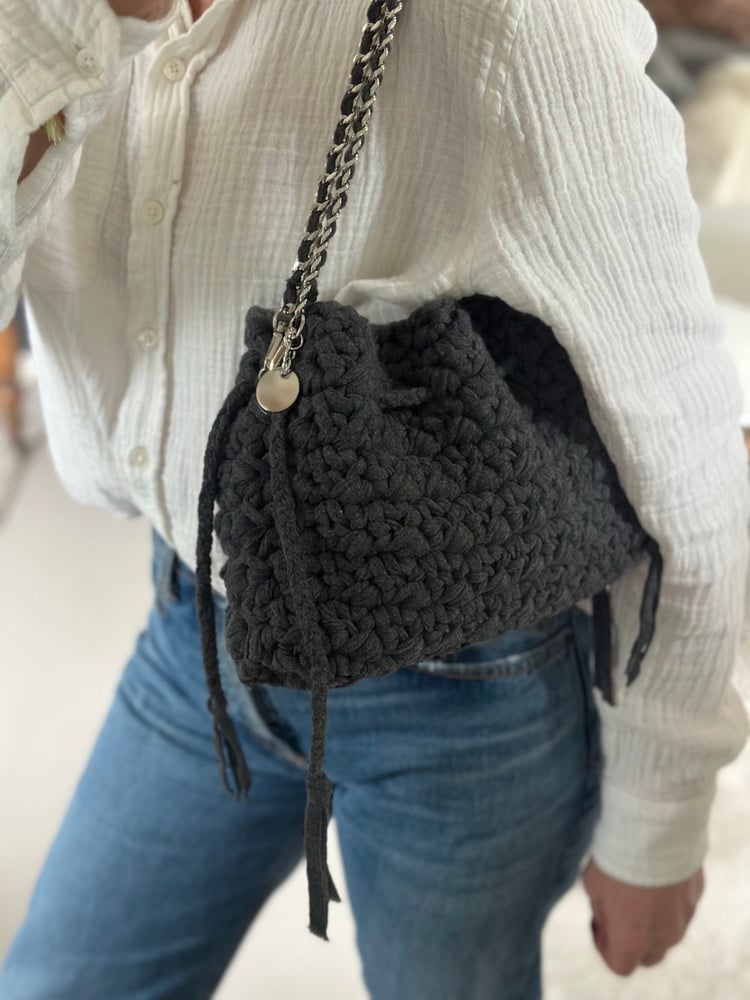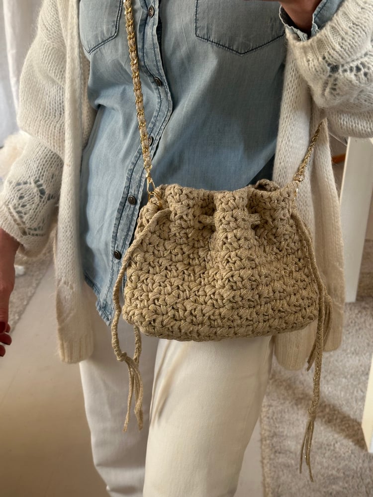 Joe est une bourse crochetée à fond plat.