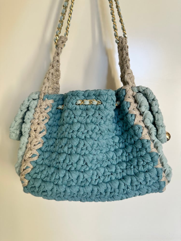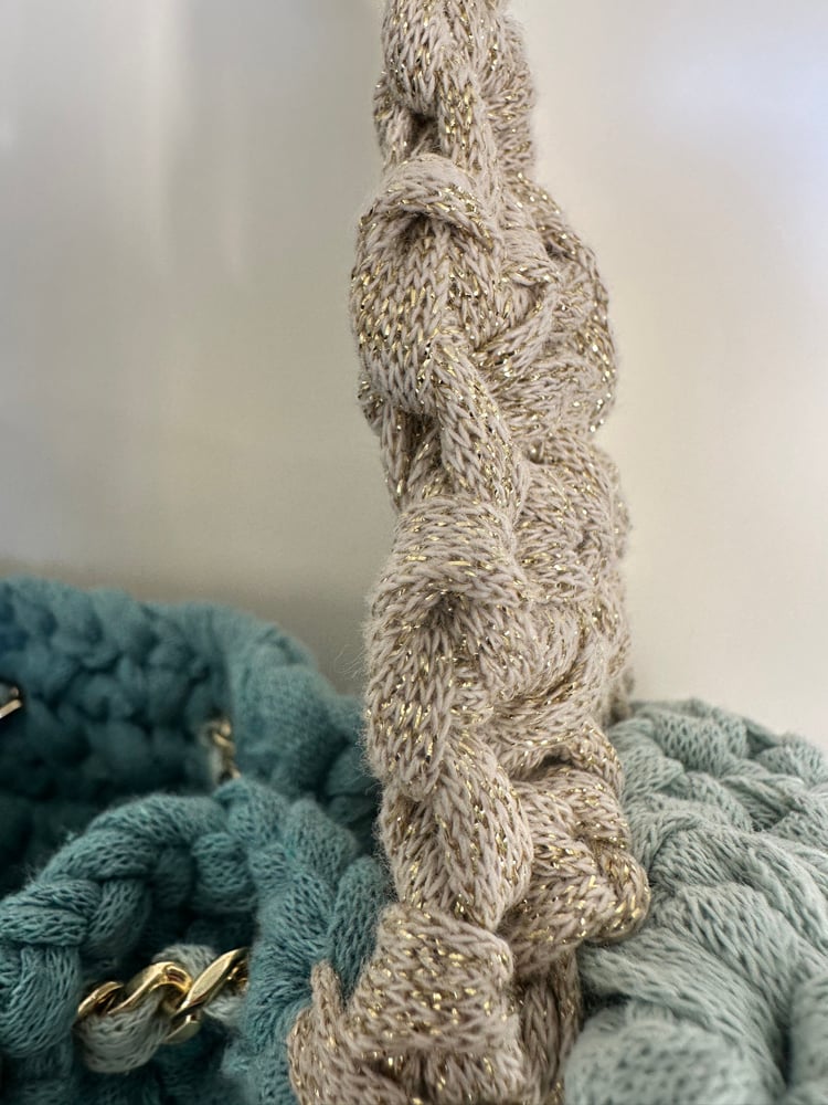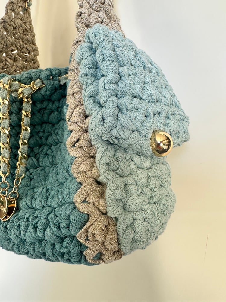 Coloris bleu lagon / bleu Sarah / beige-doré -lurex.