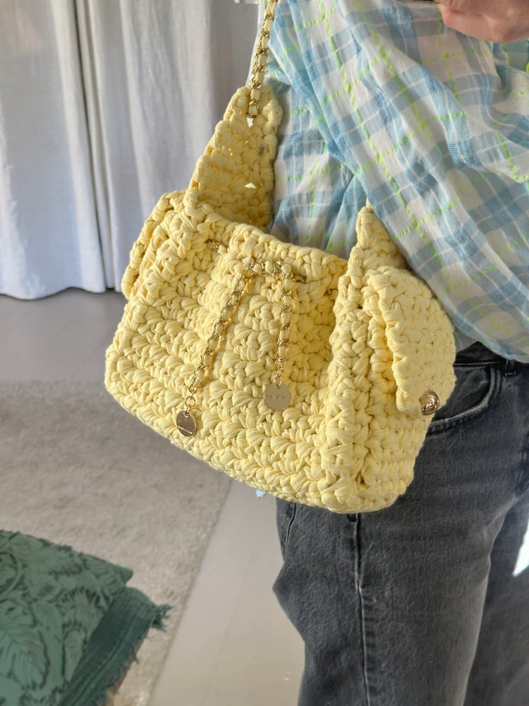 Sac forme balluchon reporter avec 2 poches plaquées de côté, fermées par un bouton doré .